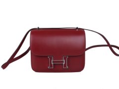 Hermès(爱马仕)constance 空姐包 酒红 box 珐琅扣 银扣 19cm