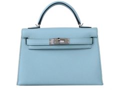 Hermès(爱马仕)miniKelly 迷你凯莉 2代 微风蓝 Epsom皮 银扣 20cm