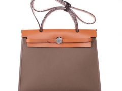 Hermès(爱马仕)herbag 31cm 驼色马鞍皮拼大象灰 帆布