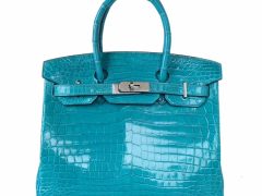 Hermès(爱马仕)Birkin 铂金包 7V湖水蓝 亮面鳄鱼 银扣 30cm