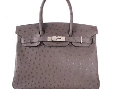 Hermès(爱马仕)Birkin 铂金包 CK82玛瑙灰 鸵鸟皮 银扣 30cm