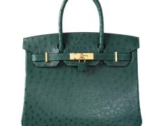 Hermès(爱马仕)Birkin 铂金包 6Q翡翠绿 鸵鸟 金扣 30cm