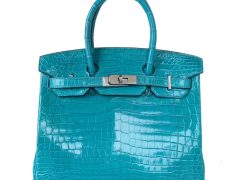 Hermès(爱马仕)birkin 铂金包 湖水蓝 亮面鳄鱼 银扣 30cm