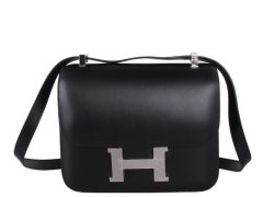 Hermès(爱马仕)Constace 空姐包 黑色 box皮 银扣 23cm