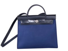 Hermès(爱马仕)herbag 黑色马鞍皮拼马耳他蓝帆布 31CM