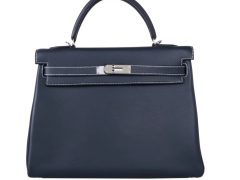 Hermès(爱马仕)Kelly 32cm 银扣 午夜蓝白线 Swift