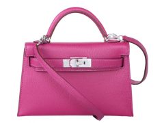Hermès(爱马仕)Minikelly迷你凯莉包包 玫瑰紫 Epsom皮 银扣 二代