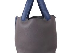 Hermès(爱马仕)Picotin菜篮子手袋 锡器灰拼玛瑙蓝 taurillon clemence 银扣 18cm