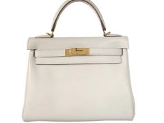 Hermès(爱马仕)Kelly凯莉包 奶昔白 原厂御用swift皮 金扣 28cm