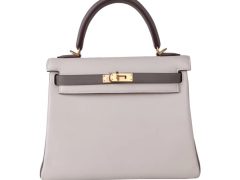 Hermès(爱马仕)Kelly 凯莉包 金棕色 奶昔白拼大象灰 Swift皮 金扣 25cm