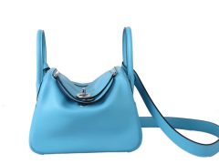 Hermès(爱马仕)mini lindy迷你琳迪包 北方蓝 原厂御用swift皮 银扣 20cm