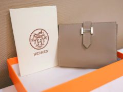 Hermès(爱马仕)Bearn 小H扣 短夹 斑鸠灰 epsom皮 银扣