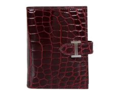 Hermès(爱马仕)Bearn 小H扣 短夹 酒红 银扣 亮面鳄鱼