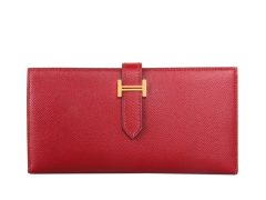 Hermès(爱马仕)Bearn H扣钱夹 石榴红 Epsom皮