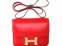 Hermès(爱马仕)Constance空姐包 中国红 原厂御用swift皮 金扣 19cm