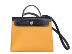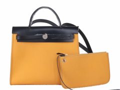 Hermès(爱马仕)herbag马鞍包 驼色马鞍皮拼琥珀黄帆布 31cm
