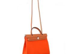 Hermès(爱马仕)Herbag 手提单肩包 金棕盖头橙色帆布 银扣 31cm