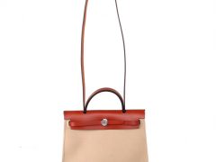 Hermès(爱马仕)herbag 31cm 驼色拼大红 帆布