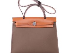 Hermès(爱马仕)herbag马鞍包 驼色马鞍皮拼大象灰 帆布 31cm