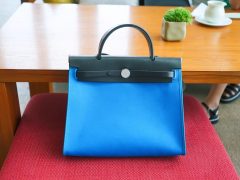 Hermès(爱马仕)Herbag 电光蓝拼马鞍皮 原色帆布 31cm 现货