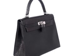 Hermès(爱马仕)Kelly 凯莉包 黑色 蜥蜴皮 银扣 25cm