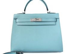 Hermès(爱马仕)Kelly凯莉包 马卡龙蓝 原版Epsom皮 银扣 28cm