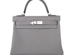 Hermès(爱马仕)Kelly 凯莉包 海鸥灰 Epsom皮 金扣 28cm