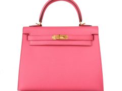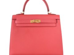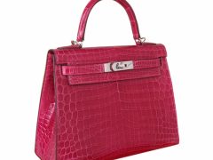 Hermès(爱马仕)Kelly 凯莉包 桃红色 亮面鳄鱼 银扣 28cm