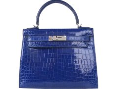 Hermès(爱马仕)Kelly 凯莉包 电光蓝 亮面鳄鱼 金扣 28cm