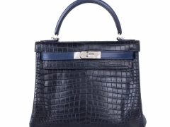 Hermès(爱马仕)Kelly 凯莉包 蓝拼黑 雾面鳄鱼 银扣 28cm