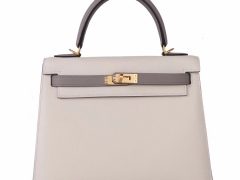 Hermès(爱马仕)Kelly 凯莉包 奶昔白拼沥青灰 EP皮 金扣 25cm