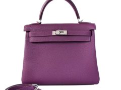 Hermès(爱马仕)kelly 凯莉包 海葵紫 Togo 银扣 28cm