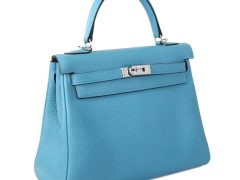 Hermès(爱马仕)kelly 凯莉包 松石蓝 Togo 银扣 28cm