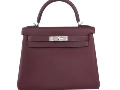Hermès(爱马仕)Kelly 凯莉包 酒红色 TOGO 银扣 28cm