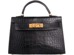 Hermes爱马仕 mini kelly 二代 22CM 金扣 CK89 黑色 亚光 鳄鱼皮