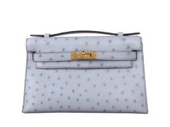 Hermès(爱马仕)Minikelly迷你凯莉 冰川蓝 鸵鸟纹 22cm
