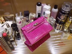Hermès(爱马仕)miniKelly 迷你凯莉 玫红色 鳄鱼皮 一代 银扣 22cm