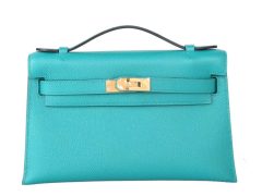 Hermès(爱马仕)miniKelly 一代 22cm 孔雀蓝 金扣 Epsom皮