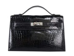 Hermès(爱马仕)miniKelly 迷你凯莉 一代 22cm 黑色 亮面鳄鱼 银扣